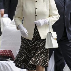 Otro de los complementos indispensables de la Reina eran los sombreros ya sean con flores, pájaros o plumas, siempre logrando combinarlos con sus llamativos conjuntos consiguiendo ese 'total look' en un mismo color que le caracterizaba. Y es que cuando apostaba por un tono, lo lleva de los pies a la cabeza. Eso sí, la mayoría de las veces rompía ese look monocolor con un bolso de mano de la firma Launer que simple colocaba en su brazo izquierdo y zapatos de medio tacón negros.