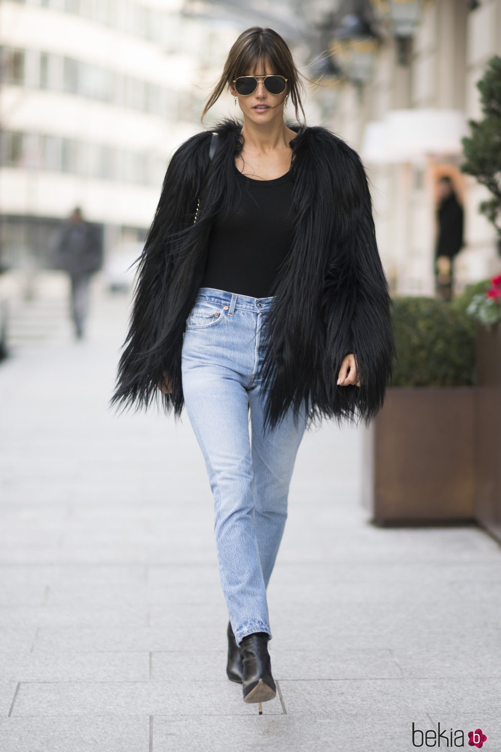 Alessandra Ambrosio con un abrgio de pelo en las calles de París
