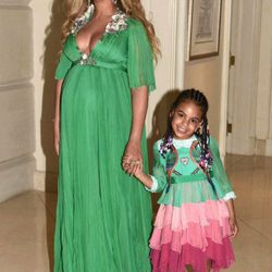Pero no todo son diseños imposibles, sino que a veces, cuando va acompañada de su hija Blue Ivy a los eventos, elige estilismos más relajados y fluidos que no marcan tanto su silueta. Durante la premiere de la película Beauty and the Beast se pudo ver a madre, de Gucci, e hija con outfits a juego con vestidos en tonos verdes, en el caso de la niña acompañado también de diferentes tipos de rosa, ambos dignos de una princesa Disney. Este juego de estilismos con su hija es algo que se está haciendo muy frecuente en sus últimas apariciones.Adicta a las redes