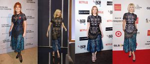 Bryce Dallas Howard llevaba un tiempo apostando por los tejidos de encaje, a pesar de que no es uno de los que mejor le sientan. La actriz escogió la prenda en el Festival de Cine de Londres y se combinaba con unas sandalias de tacón con varias tiras, el pelo recogido y ningún complemento.