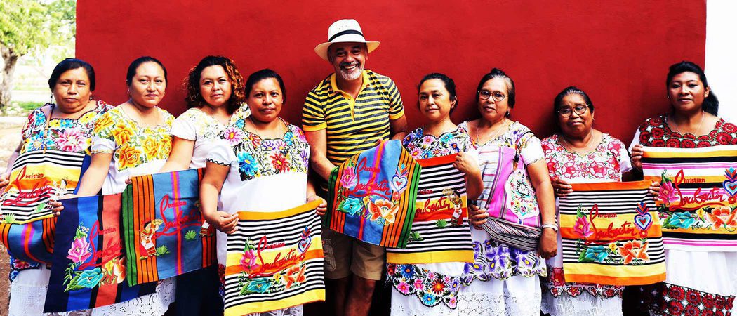 El famoso creador de la suela roja ha estado con las artesanas mayas de allí para crear un bolso tote cargado de su cultura: más de un centenar de artesanas locales han participado para realizar estas piezas completamente a manos.