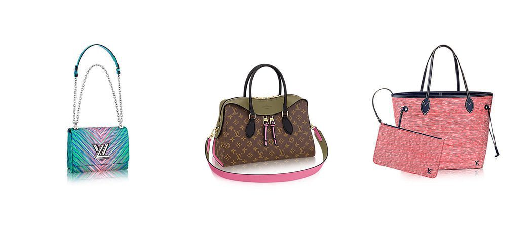 La primavera/verano 2017 de Louis Vuitton ofrece una gran variedad de bolsos a elegir entre los más originales. En primer lugar se puede encontrar una línea neón elaborada con colores como el rosa, el rojo, verde y azul unidos a través de líneas, muy llamativos y atractivos.