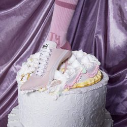La zapatilla 'Bow Sneakers' se inspiran en el modelo 'Trinomic', uno de los más icónicos de Puma. Estas sneakers tienen el empeine y la suela en un solo color, y se decoran con un gran lazo satinado. Por último, las sandalias 'Bow Slide' están inspiradas en el lujo de la época de Maria Antonieta y coloca a las chanclas de la colección en un nivel superior. También decoradas con un lazo de satén, las sandalias se elaboran mediante un forro de espuma que asegura su comodidad.