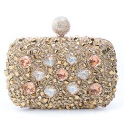 Los bolsos por su parte, se convierten en verdaderas joyas transformadas en clutch con detalles de cristales y flores en tonalidades metálicas siendo el dorado el protagonista de la fiesta y del look al completo.