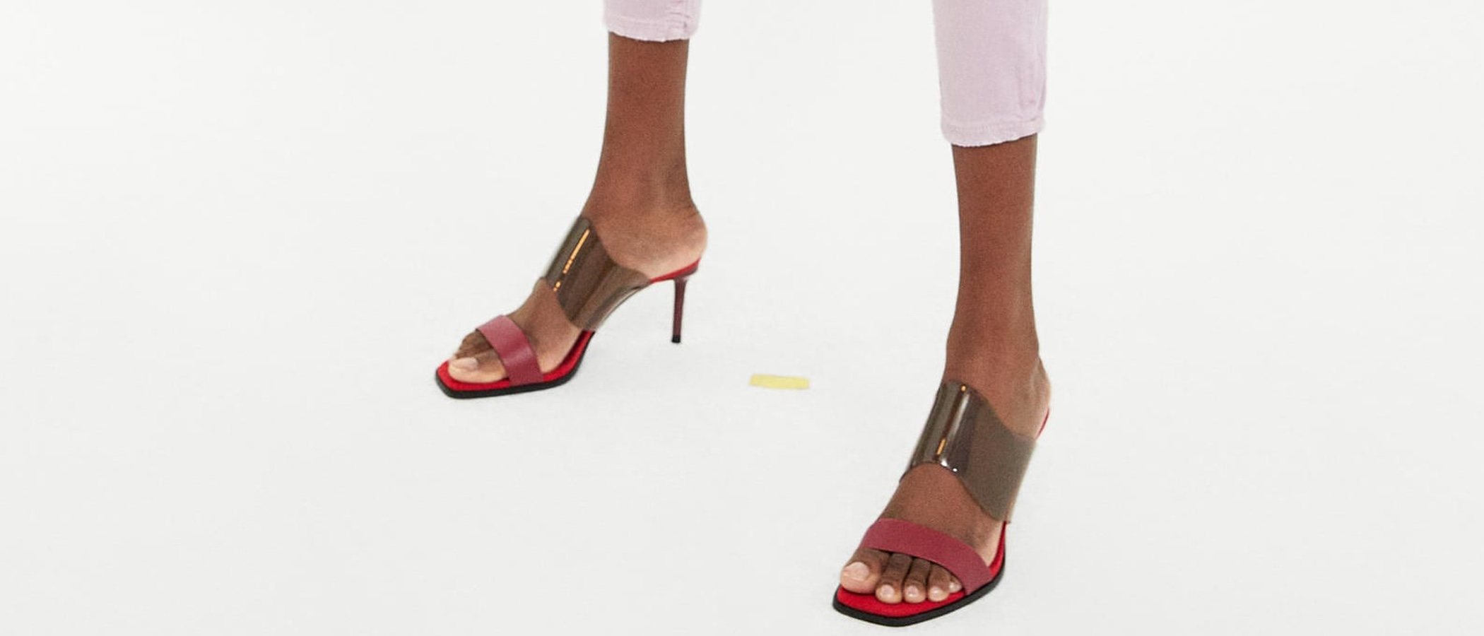 Las sandalias de vinilo pueden ser de colores/BershkaAsí pues, también puedes ponerte las sandalias transparentes de tacón para ocasiones formales durante el día, como para ir a trabajar o si tienes una cita. Combínala con prendas elegantes o crea un look más casual si te la pones con unos vaqueros (claros mucho mejor que oscuros) de corte recto o pitillo y una camisa blanca lisa o de un color o estampado no demasiado llamativo, con tal de mantener un estilismo elegante y evitando restar protagonismo al calzado, el rey absoluto de este outfit.