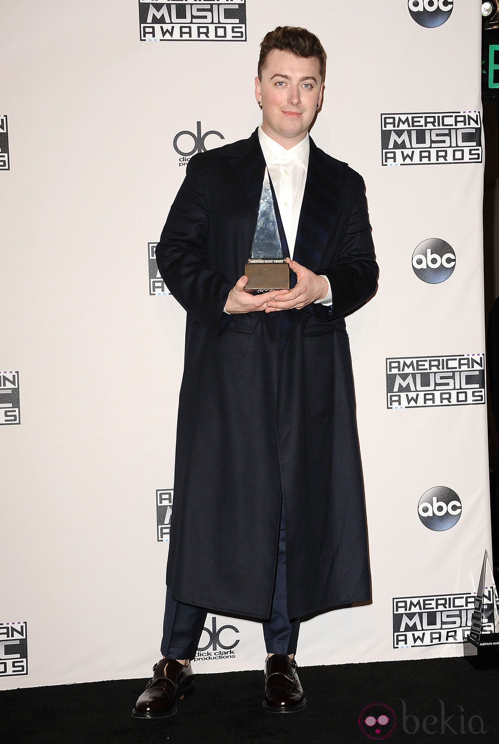 El cantante Sam Smith con su galardón de los American Music Awards 2014.
