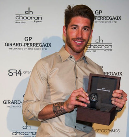 Sergio Ramos posando con un reloj de Girard-Perregaux La manufactura suiza Girard-Perregaux cuenta con un nuevo embajador, el jugador del Real Madrid y de la selección española Sergio Ramos, quien ha presentado la colección 'Hawk' de Girard-Perregaux, la más deportiva de la marca Suiza.