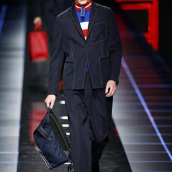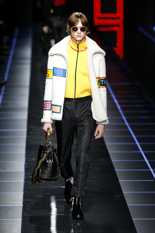En esta ocasión Fendi ha apostado por el optimismo y la alegría en cada una de sus prendas, llenando la pasarela de color. La firma italiana pretende llegar al corazón de aquellos hombres que quieran vestirse de manera formal sin perder el ánimo de combinar la ropa sobria con aquella más casual.Mensajes como 'love', 'yes' o 'fantastic' decoran las camisetas y jerseys de la colección invitando a la felicidad, combinandose con la palabra 'Fendi'. La propia directora creativa, Silvia Venturini, aseguró tras el desfile que para ella las letras no son un simple logotipo, sino "toda una historia".