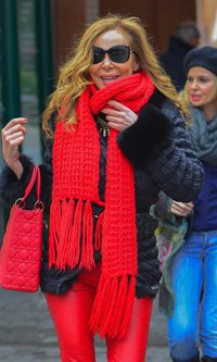 La modelo consiguió convertir un outfit simplón en uno digno de mención gracias a los complementos. La chaqueta en color coral y el foulard de leopardo daban un toque actual al look, mientras que su bolso, un icónico 'Birkin' en color azul se convertia en la estrella siendo el centro de atención del outfit. Cuando se quiere disimular un look demasiado simple o que pensamos que no nos favorece mucho, no hay nada como central la atención en algún complemento llamativo.