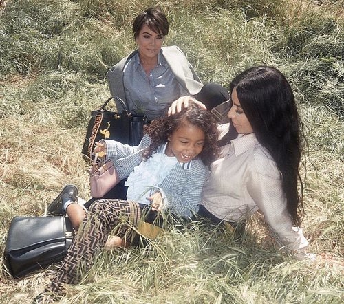 La campaña #MeandmyPeekaboo hace honor al aniversario del décimo aniversario del emblemático bolso Peekaboo. Una de las imágenes más enternecedoras de la campaña es en la que salen las 3 generaciones de Kardashian recostadas en el suelo del campo, con sus respectivos bolsos de la firma.
