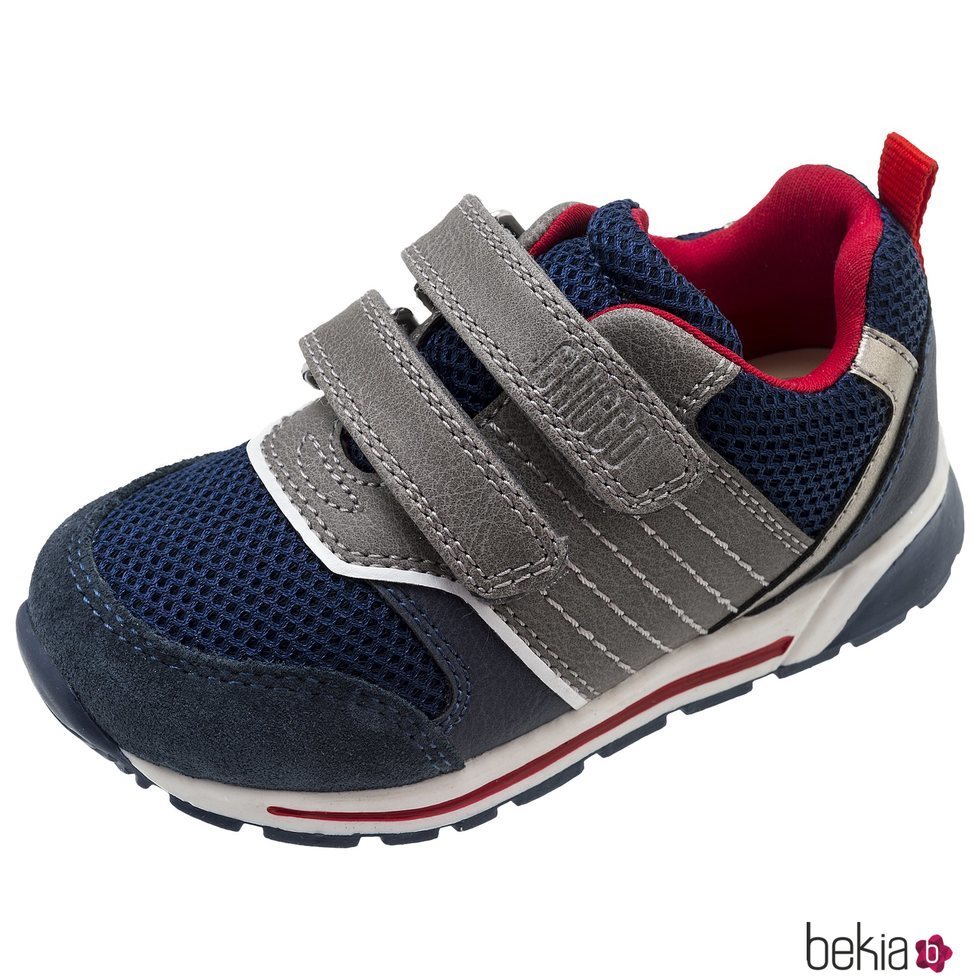 Deportivas en tonos azules, grises y rojos, con cierre de velcro y suela dentada de la nueva colección de calzado de Chicco.