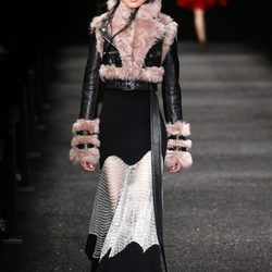 El traje de chaqueta se vuelve sport mientras que las prendas se ciñen mediante cinturones largos. El cuero también tiene especial protagonismo junto a los volantes, el encaje, tejido de pelo y vaporosos, aunque las asimetrías ponen el punto más especial a toda la línea de ropa.