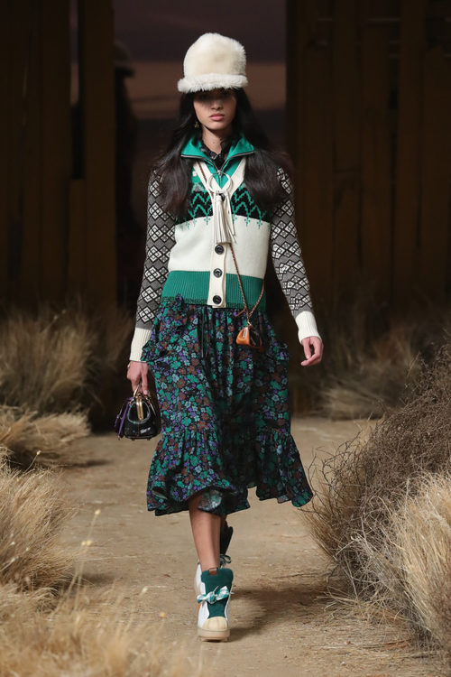 Destaca la superposición de capas, las chaquetas decoradas con borrego, los vestidos vaporosos y los abrigos acolchados. El estampado floral llega pisando fuerte junto a los cuadros, sobre todo en prendas de parte inferior como pantalones o faldas de corte midi. Cabe destacar que, en la línea femenina, los bolsos se vuelven de tamaño mini y se decoran con flores y con tonalidades pastel.