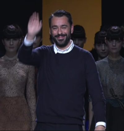 El zapato en cuestión era de estilo Luis XIV con su característica lengüeta y un finísimo tacón dorado con el que las modelos mantenían el equilibrio sobre el escenario a duras penas, aunque afortunadamente no ha habido que lamentar ningún tropezón como en el desfile de Roberto Verino.