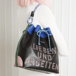 El diseñador toma como referencia una frase de Freud que cubre todo tipo de prendas, sobre todo los bolsos y las mochilas. 'Amar y trabajar' fue la respuesta que dio el filósofo a la pregunta de qué hay que hacer para ser feliz, por lo que es un concepto digno de aparecer en la temporada.