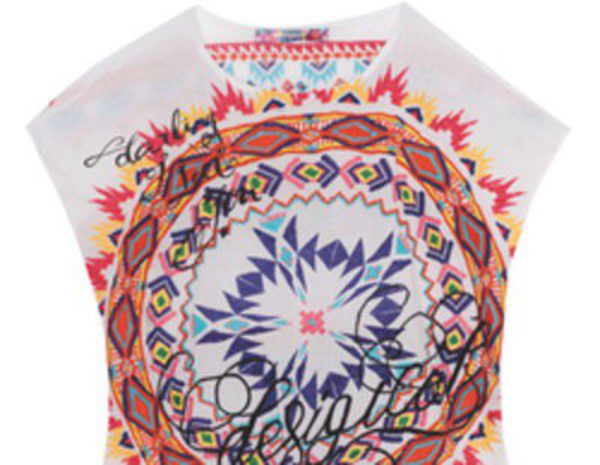 Prendas étnicas de la colección primavera/verano 2013 de DesigualY además de plasmar esta tendencia en camisetas, pantalones y vestidos, Desigual también lleva lo étnico hasta su colección de calzado, -donde podemos ver sandalias planas de estilo romano y otras con cuña-, y complementos.