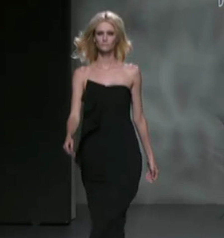Desde el front row Norma Duval ha seguido la colección de la firma que ha arrancado con un vestido de corte recto y falda en la parte izquieda en blanco y negro, la combinación por excelencia para la temporada invernal.