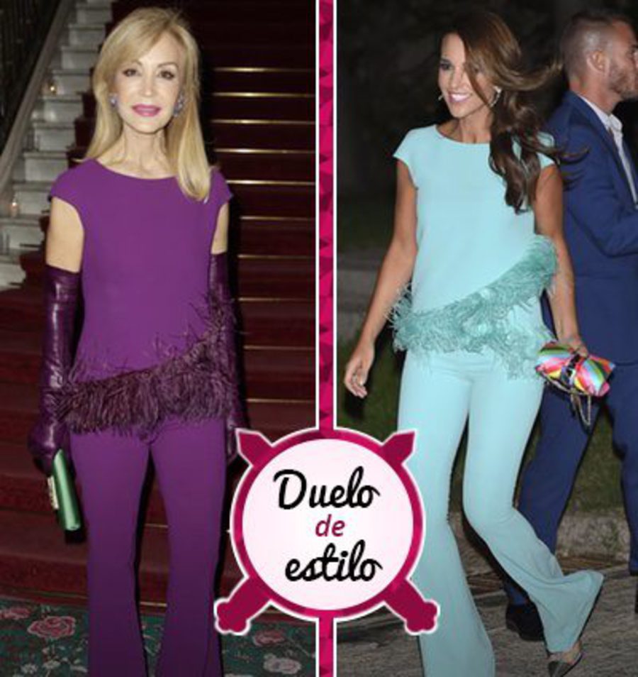 Un diseño de Jorge Vázquez ha sido el motivo de la batalla entre las dos celebridades del panorama nacional. Las dos son fieles a la firma que en multiples ocasiones han vestido y a la que han apoyado en numerosos eventos. Es por ello por lo que no es de extrañar que ambas hayan coincido con este conjunto de dos piezas con detalle de plumas.