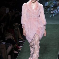Lagerfeld ha jugado con una tonalidad de color muy clara en algunos de sus diseños, entre los que podemos encontrar abrigos de pelo en rosa empolvado y blanco, toda una oda a la feminidad. El invierno se llena de colores pastel, en contraposición a otros colores ocuros más característicos de la temporada.