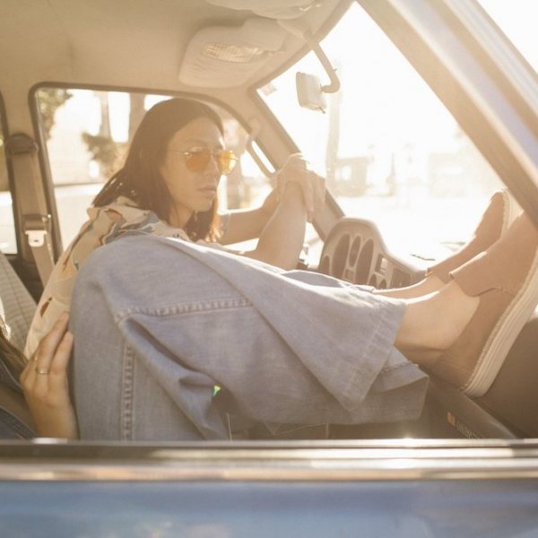 Zapatos marrones con detalles bordados de rafia, de una tonalidad más clara, con la suela de tonalidad blanca.