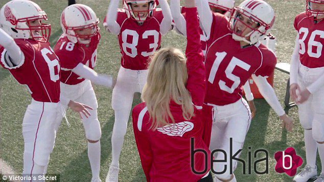 Los ángeles de Victoria's Secret con el uniforme del equipo 'The Devils' de fútbol americano para la campaña de la Super Bowl 2016