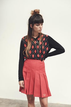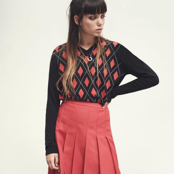 Falda escocesa color salmón con Jersey de rombos de Cashmere