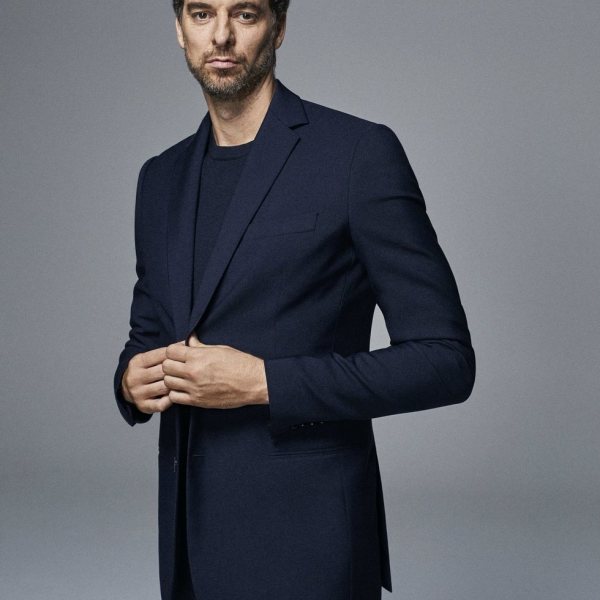Pau Gasol es nombrado como nuevo embajador de la firma Tommy Hilfiger en España y luce un traje chaqueta azul marino de la firma.