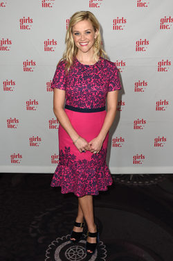 La actriz Reese Witherspoon ataviada con un vestido rosa en la gala Girls Inc a la que acudió en Los Angeles (California, Estados Unidos).