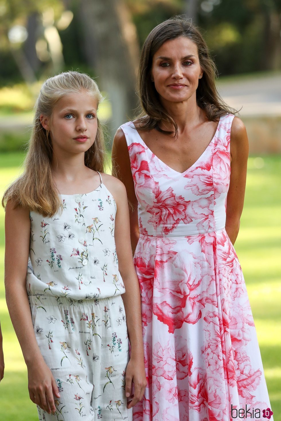 La Reina Letizia ha deslumbrado en el tradicional posado de verano de la Familia Real Española en los jardines del Palacio de Marivent. La Reina ha escogido un precioso vestido de flores, de corte midi y escote en uve, que ha combinado por segundo año consecutivo con alpargatas en color camel.