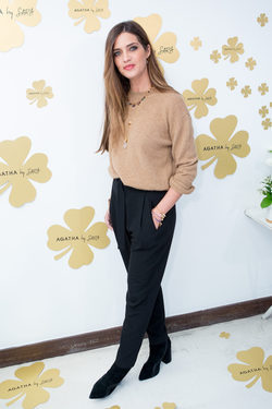 La presentadora Sara Carbonero con un look en color negro y camel en la presentación de la nueva colección de joyas de Agatha París.