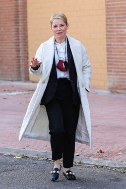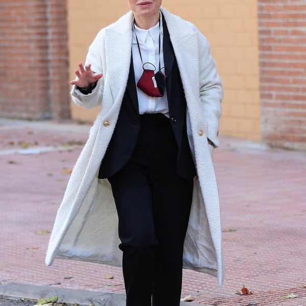 La cantante Soraya Arnelas con traje, camisa y mules, un look muy elengante, haciendo la mudanza el pasado octubre de 2020.