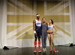 La diseñadora Stella McCartney junto a dos deportistas de los Juegos Olímpicos de Londres 2012 que lucen sus diseños