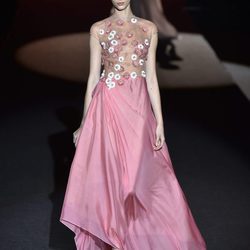 Vestido rosa con flores bordadas de Hannibal Laguna de la colección otoño/invierno 2017/2018 en Madrid Fashion WeekFlores, joyas, movimiento