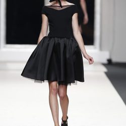 Diseño de Jesús del PozoCarmen Kass abrió la parte final del desfile dedicada a los diseños específicamente para la noche. La modelo lucía un vestido largo negro cubierto de grandes lunares transparentes en el mismo tono y amplio escote de espalda. Un fantástico escote asimétrico fue el siguiente en aparecer en la pasarela, al que siguió un lujoso diseño con pedrería cubriendo el pecho de la modelo y transparencias en toda la espalda.