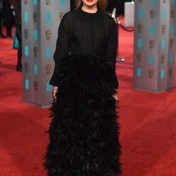 Pero si ha habido alguien que no ha sabido en acertar en una noche mágica como son los BAFTA, ha sido la actriz Laura Haddock. Para sorpresa de todos la intérprete ha sido una de las peor vestida de la noche, y es que su modelo no es nada lícito para una entrega de premios. Haddock se ha enfundado en un diseño total black. Un vestido conformado por una falda de plumas desmesurada de Givenchy y una camisa de transparencias. Look muy fúnebre para una noche de luces.