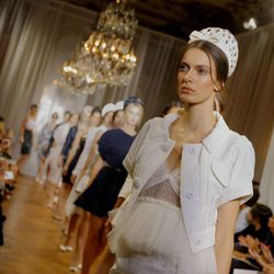 El británico Peter Copping, director creativo de la firma desde 2009, enfoca una mirada de ternura a la musa que le dio forma en los años 40. Y ese camino no es otro que el de la feminidad más absoluta, que Copping hace aflorar a través de tejidos delicadísimos, sobre todo muselinas, tules y sedas, y mediante la fragilidad de los detalles de costura, como los minivolantes, un recurso muy Ricci, , los fruncidos y las finas superposiciones.