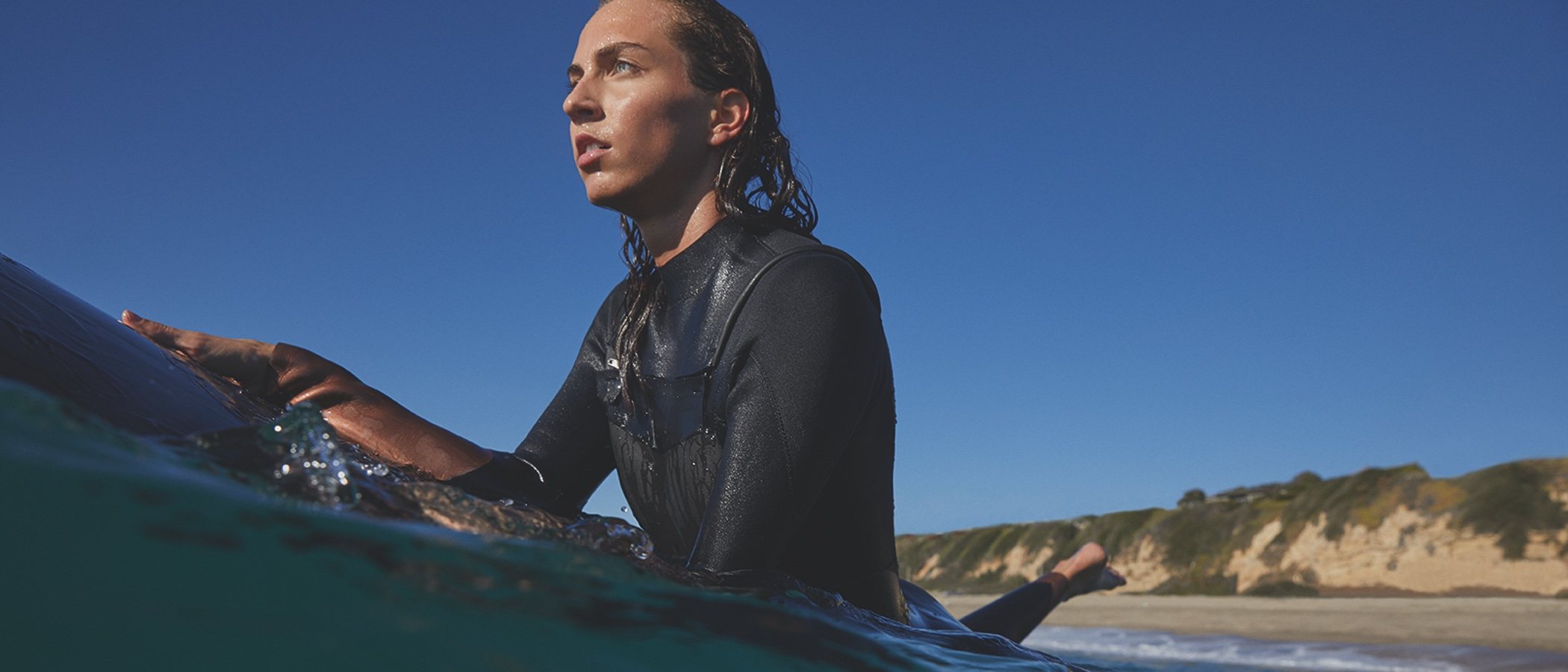 Las piezas protagonistas son los bodies, leggings y monos que son diseñados con costuras planas, cierres forzados e interior térmico que cuenta con diferentes grosores que aportan una alta movilidad. La sesión de fotos de la campaña, se realiza en el mar con una tabla de surf.