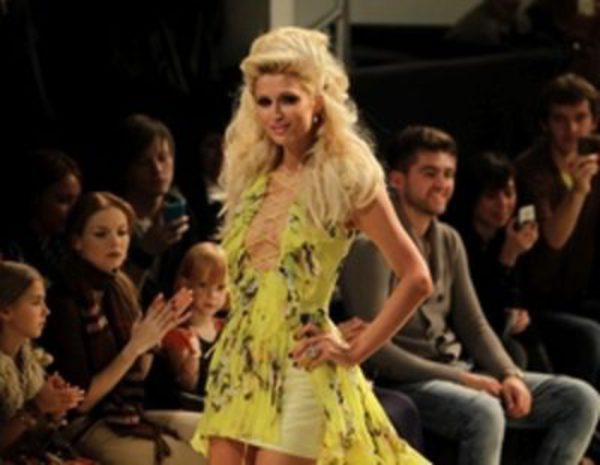 La famosa heredera desfila con un diseño de Andre Tan en la Semana de la Moda de Kiev.
