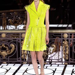 Dos atrevidos looks de Alta Costura de VersaceY por si con el fucsia todavía consideras que podrías pasar desapercibida, la firma también ha mostrado sobre la pasarela algunos looks completamente dorados -como una chaqueta larga a modo de vestido- y otros en amarillo flúor.