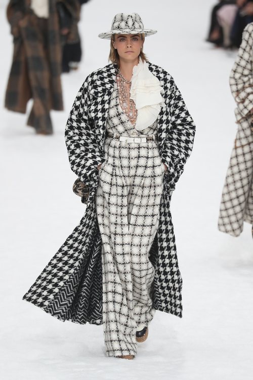 El escenario por el que han desfilado las modelos ha sido de lo más original y sin fallar a lo esperado de la casa francesa que temporada tras temporada convierten el Grand Palais de París en un mundo aparte como ocurrió en la presentación primavera/verano 2019 donde el escenario era una playa y la firma apostó por la ausencia de tacones. Esta vez, casitas de madera cubiertas de nieve, recreando así un escenario invernal de lo más acogedor.