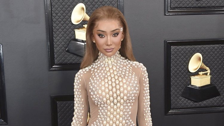 No abandonamos el color blanco para fijarnos en otro estilismo... complicado. Nikita Dragun no quería pasar desapercibida entre tanta artista, modelo y actriz y optó por llamar la atención con la mezcla de tendencias y con un vestido que deja mucho que desear.