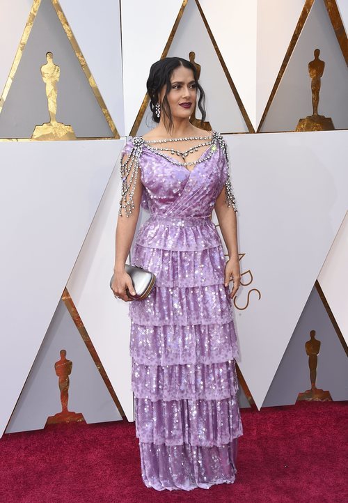 Entre la lista de los conjuntos expectantes de la noche estaba la elección de Salma Hayek que siempre deslumbra con las apuestas más elegantes. En esta ocasión la actriz fallaba de pleno con una pieza, de la que no sabemos que aspecto nos gusta menos.