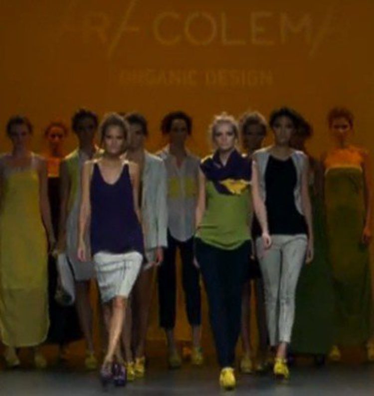 Por otra parte, otros de los rasgos de la línea primavera/verano 2014 de Sara Coleman vino dada por los vestidos en color verde y tonos neutros, así como por la incoporación de algún que otro detalle étnico que imprimía carácter y personalidad a la colección. Todo ello, cómo no, sobre patrones de corte asimétrico y escotes palabra de honor y como novedad, tops oversized y bolsillos en tonos fúor.