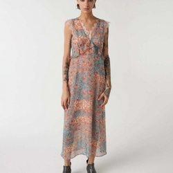 De los diseños midi destaca un vestido de corte asimétrico con un estampado tropical que lleva un cinturón en color verde que puedes atar a tu gusto. El tirante es ancho con escote en pico. Y de los diseños largos, destaca un vestido con estampado floral en tonos pastel con un tejido de gasa, de tirante ancho con encaje. Todos los diseños ya están disponibles en su página web o en sus tiendas.