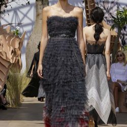 El tul ha sido el tejido estrella de la colección, tanto en su forma plisada como lisa, en forma de vestidos muy ligeros con aires de romanticismo. Sin embargo, este no ha sido el único tejido presentado por Dior para su 'Haute Couture', ya que el terciopelo, la seda y el encaje también se han dejado ver en los diseños.