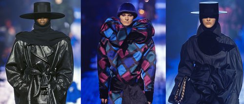 La entrega es un homenaje claro a los grandes de la moda como Yves Saint Laurent, fuente de inspiración del diseñador. El complemento sorpresa de esta pasarela eran los sombreros de ala afilados colocados en las cabezas de una gran cantidad de modelos que desfilaban.